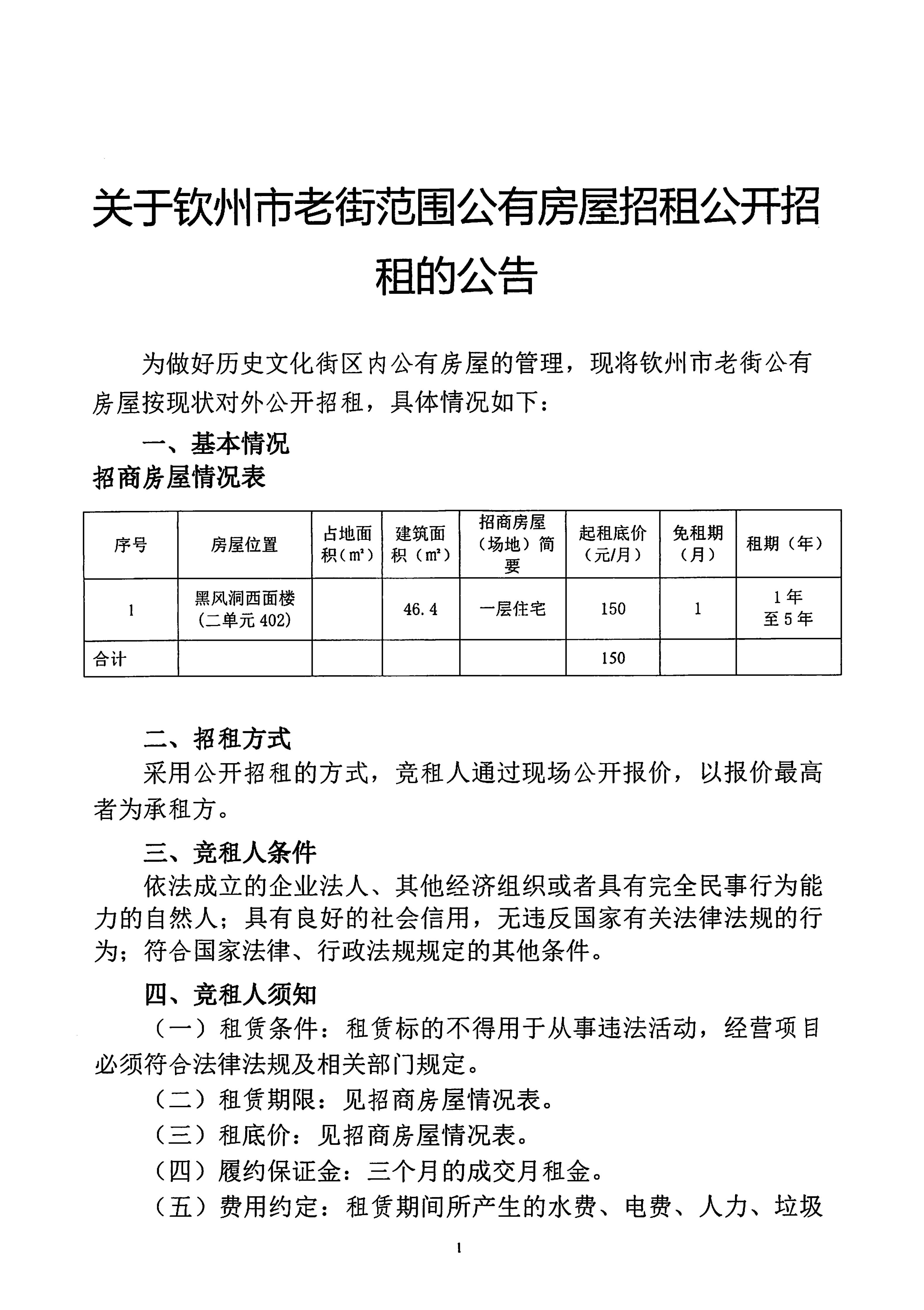 關(guān)于欽州市老街范圍公有房屋招租公開招租的公告(黑風洞西面樓二單元402...