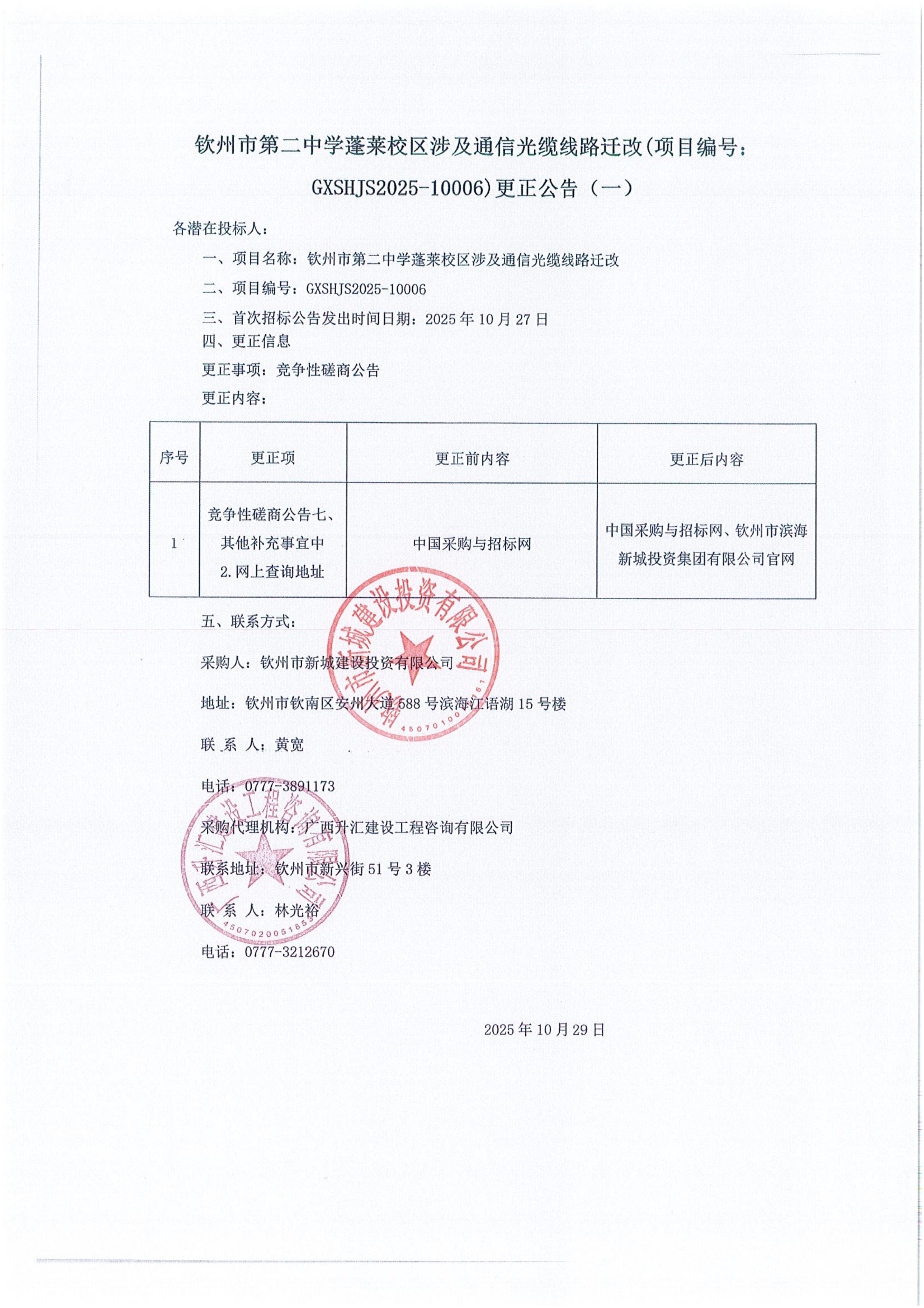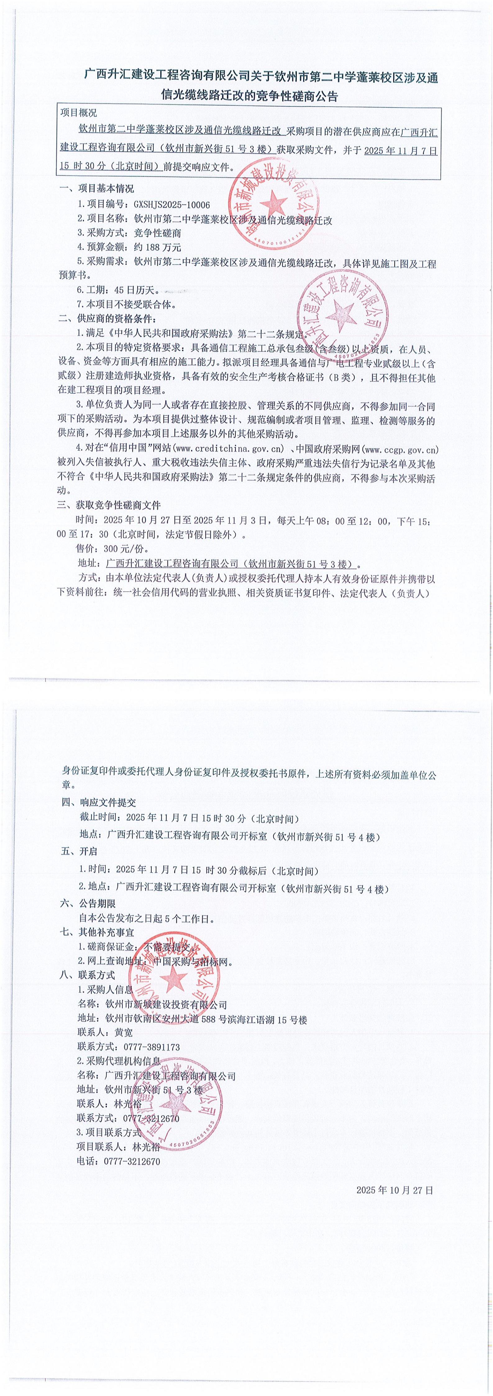 關(guān)于欽州市第二中學蓬萊校區(qū)涉及通信光纜線路遷改的競爭性磋商公告
