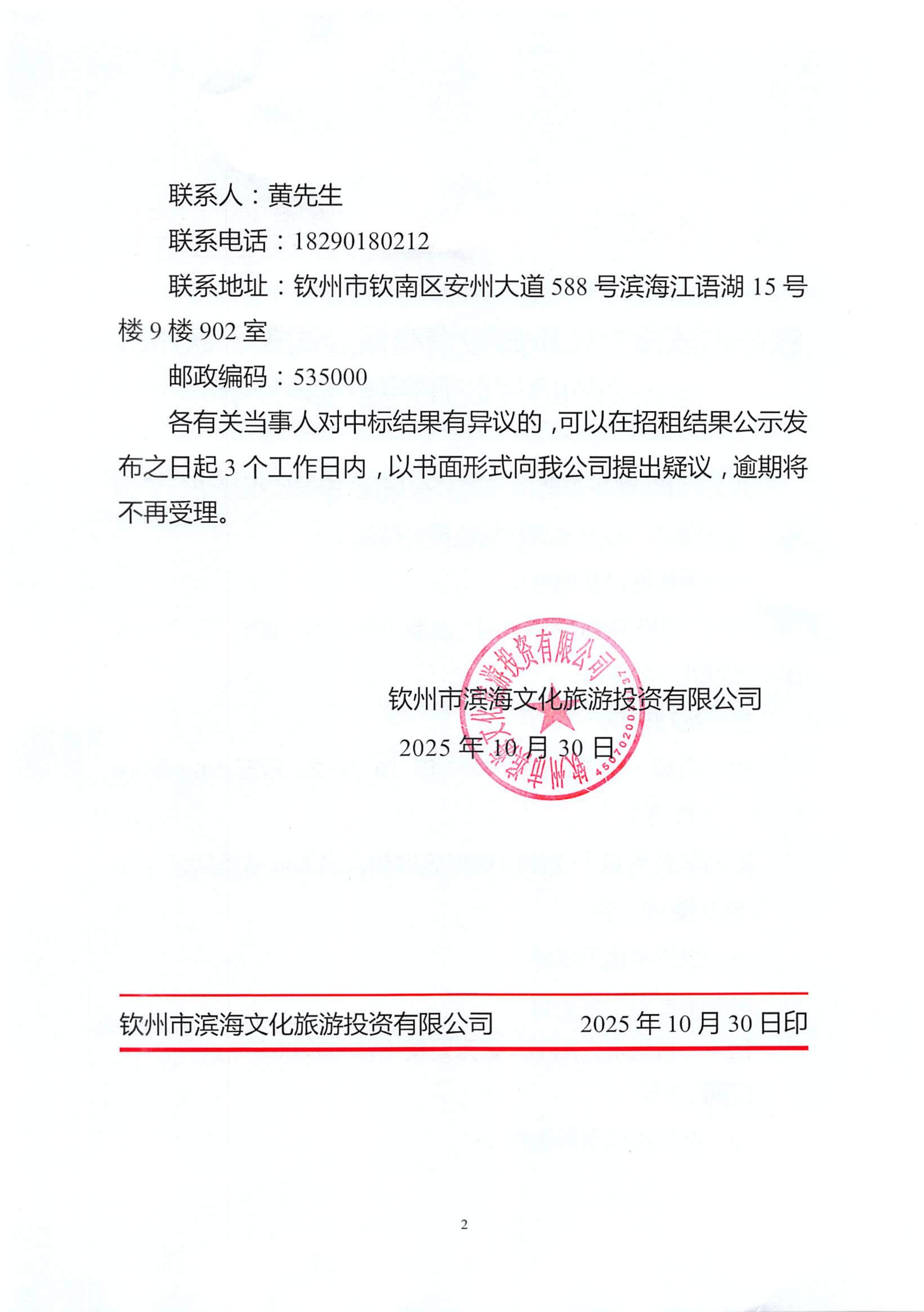 欽州市濱海文化旅游投資有限公司關于欽州市老街范圍房屋公開招租結果公示